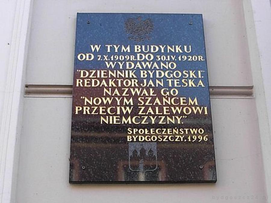 1907 – Redaktor Jan Teska zaczyna drukować w nakładzie 100.000 egzemplarzy zasłużony dla obrony polskości ?Dziennik Bydgoski?. Jego redaktor i wydawca napisał we wstępie tego numeru: ?Stwarzamy nową placówkę obrony narodowej, sypiemy nowy szaniec przeciwko zalewowi niemiecczyzny…?