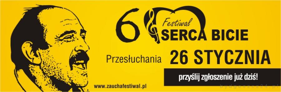Organizatorzy 6. Festiwalu Pamięci Andrzeja Zauchy ?Serca Bicie? zapraszają solistów lub duety w wieku od 16 do 35 roku życia na przesłuchania, które odbędą się 26 stycznia w Hotelu City w Bydgoszczy. Na zgłoszenia czekają do 22 stycznia.