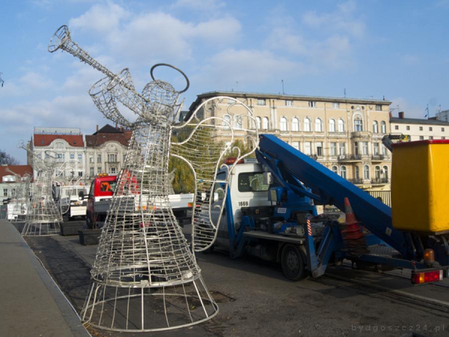 Świąteczny wystrój na bydgoskich ulicach pojawia się co roku coraz wcześniej. Choinki z lampkami stawiano zwykle dopiero na początku grudnia. Anioły nie mogły się doczekać. Instalują się już przed festiwalem CAMERIMAGE.