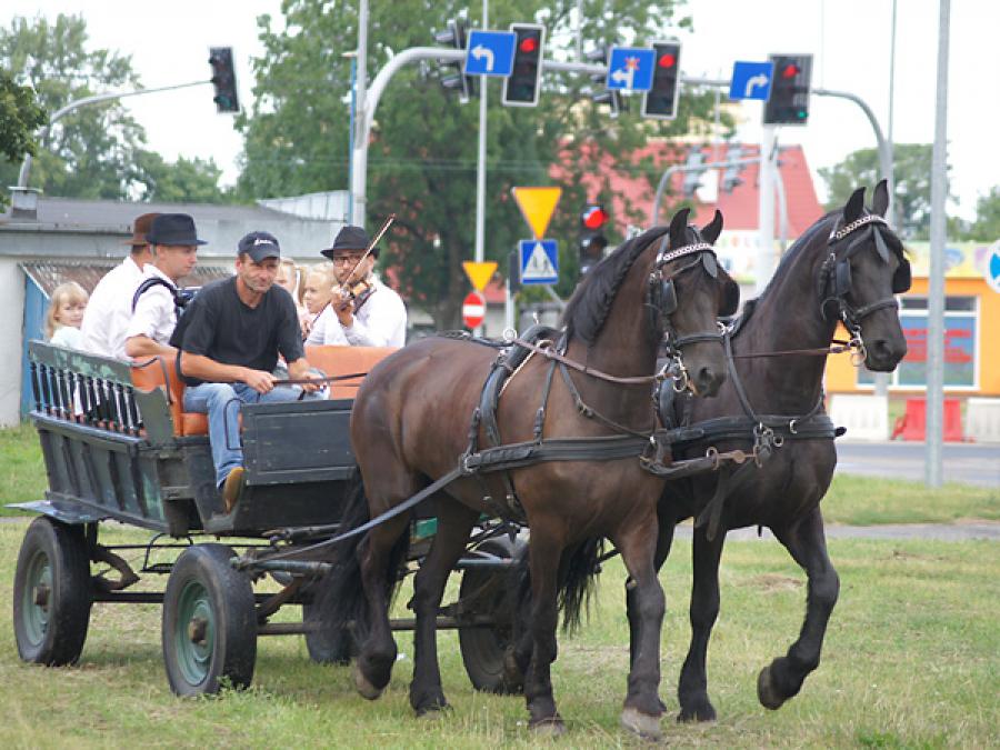 Wpadające w ucho ludowe rytmy przyciągnęły przypadkowych uczestników, ale przejażdżka bryczką z grającą kapelą była dla najmłodszych dużą atrakcją.