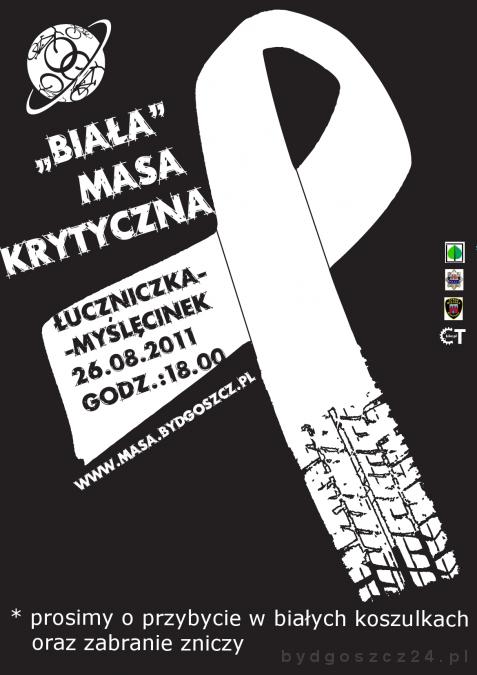 – Chcemy, by ta tradycja przetrwała jak najdłużej i pamięć o Adamie nie zaginęła. Sierpniowe przejazdy są zawsze szczególne, bo mają przypominać, że nieodpowiedzialny kierowca na drodze może doprowadzić do takiej tragedii ? mówi prezes Stowarzyszenia Bydgoskiej Masy Krytycznej, Wojciech Bulanda.Tegoroczna Biała Masa Krytyczna wyruszy 26 sierpnia o godzinie 18 spod hali ?Łuczniczka?. Wszyscy rowerzyści powinni przyjechać w białych koszulkach. Peleton z ulicy Toruńskiej przejedzie przez Kapuściska, Wyżyny, Śródmieście, Osiedle Leśne do LPKiW. Tam, przy krzyżu upamiętniającym wypadek, zostaną zapalone znicze.