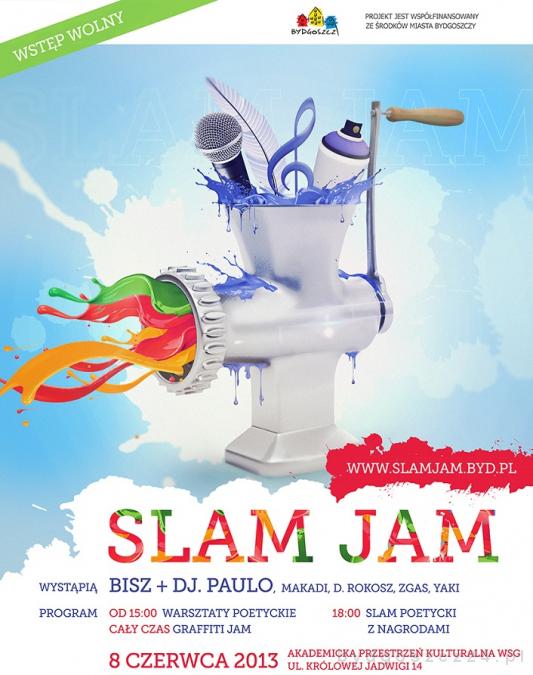 Slam Jam jest interdyscyplinarnym projektem zorganizowanym przez Fundację Gaudeamus przy współpracy ze studenckim Kołem Inicjatyw Innowacyjnych w Kulturze OTHER WAY, który ma na celu połączenie poezji z elementami typowymi dla kultury hip-hop oraz przybliżenie obu środowiskom siebie nawzajem. Podczas prezentacji zgłoszonych slamerów, Bisz (raper z tytułem Bydgoszczanina Roku) we współpracy z Yakim, ze wszystkich wypowiedzianych podczas wystąpień uczestników słów, stworzą nowy utwór, do którego zostanie dobrana muzyka.
