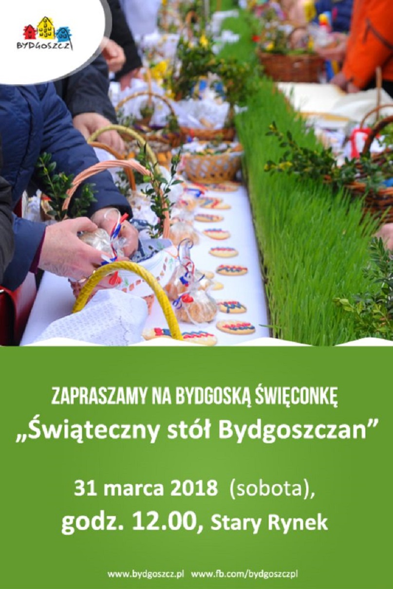 Jak w poprzednich latach Bydgoska Święconka odbędzie się na Starym Rynku, początek o godz. 12.00. Tradycyjnie już, dla mieszkańców przygotowana została również słodka niespodzianka. Po poświęceniu pokarmów będzie można skosztować wielkanocnych wypieków, bab i mazurków. Wspólny, bydgoski wielkanocny stół ozdobią też dekoracyjne baranki, zające i pisanki.