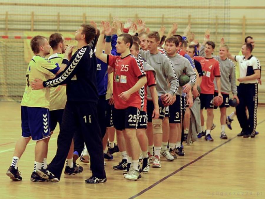 Derby były od pierwszego gwizdka sędziego bardzo jednostronnym widowiskiem. Słabi torunianie nie dotrzymywali kroku faworytowi z Bydgoszczy i do 8 minuty notowali na swoim koncie zaledwie jedną bramkę! Wspaniale w bydgoskiej bramce spisywał się Bartosz Makowski, a jego koledzy byli na tyle skuteczni, że prowadzili już 7:1. Dobra obrona w wykonaniu naszych zawodników pozwalała na grę kontratakiem, w której brylowali jak zawsze Dawid Nawrocki i Łukasz Wiśniewski. Obaj zdobyli łącznie 13 bramek.