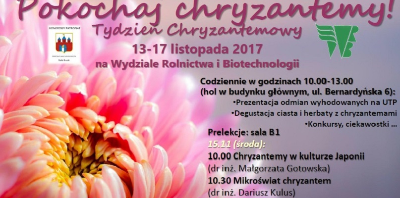 Tydzień Chryzantem 13 - 17 listopada w godzinach 10.00-13.00 - Wydział Rolnictwa i Biotechnologii UTP, ul. Bernardyńska 6.