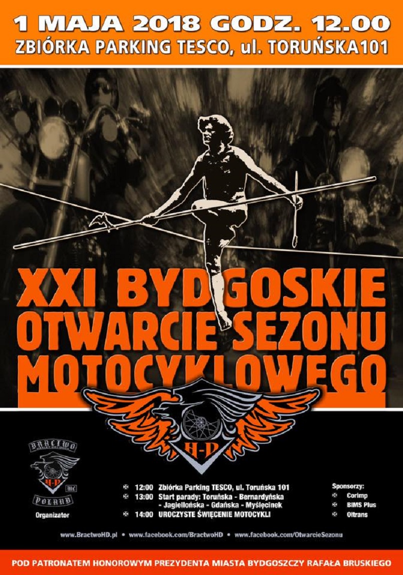 Bractwo Harley-Davidson MC Poland zaprasza jutro o godz.12 na parking Tesco motocyklistów na otwarcie sezonu motocyklowego. Stamtąd o godz. 13 wyruszy wielka kawalkada wspaniałych maszyn i ulicami Toruńską, Bernardyńską, Jagiellońską, Gdańską przejedzie do Myślęcinka na piknik.