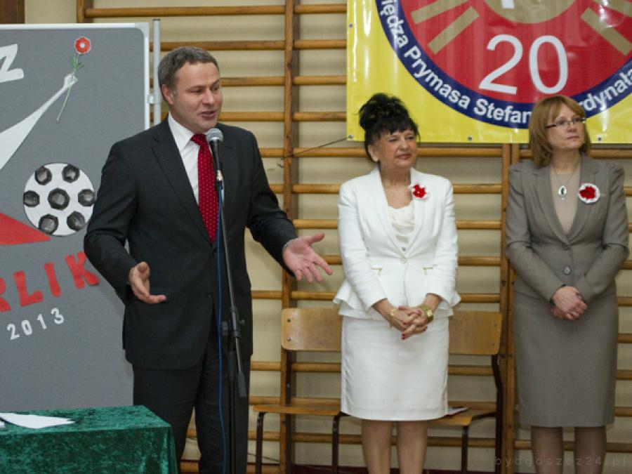 Wicewojewoda kujawsko-pomorski Zbigniew Ostrowski obdarował szkołę kompletem piłek i żartobliwie powiedział: – Komunikat pogodowy. Nowa świecka tradycja przy oddawaniu do użytku obiektów sportowych, szczególnie boisk, jest taka, że zamawiamy deszcz – żeby boisko mogło przejść próbę wodną. To boisko tę próbę przejdzie na pewno. Kto wie, czy nie przyjadą Anglicy… Po czym poinformował, że prezydent Rafał Bruski występuje w dwóch rolach. Jako samorządowiec jest beneficjentem środków rządowych, a jak był wojewodą to właśnie on rozpoczął program budowy “orlików” w województwie kujawsko-pomorskim, których już jest ponad 200.