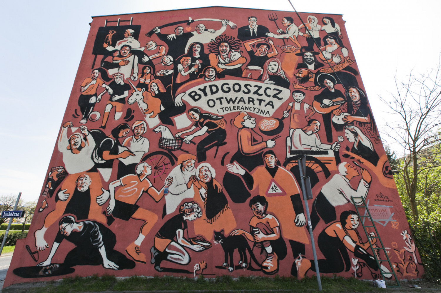 Prezydent Bydgoszczy Rafał Bruski podchwycił ideę Forum Obywateli Bydgoszczy, którzy od stycznia 2017 roku prowadzą kampanię pod nazwą „Bydgoszcz otwarta i tolerancyjna”. FOB zorganizowało konkurs na mural, a miasto ufundowało materiały i wszelki sprzęt potrzebny do jego wykonania.