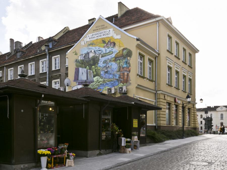 Centralnym elementem malowidła na tylnej ścianie budynku przy Starym Rynku 15-21 jest wijąca się rzeka. To oczywiście Brda. Na pierwszym planie widać herb Bydgoszczy, a oprócz niego znajdują się na muralu dwa bydgoskie pomniki (Łuczniczka i Przechodzący przez rzekę), Opera Nova, spichrze i marina, a z boku wieża ciśnień. Brdą płyną ludzie kajakami. Na górze widnieje hasło: ?Bydgoszcz – rzeka możliwości?.