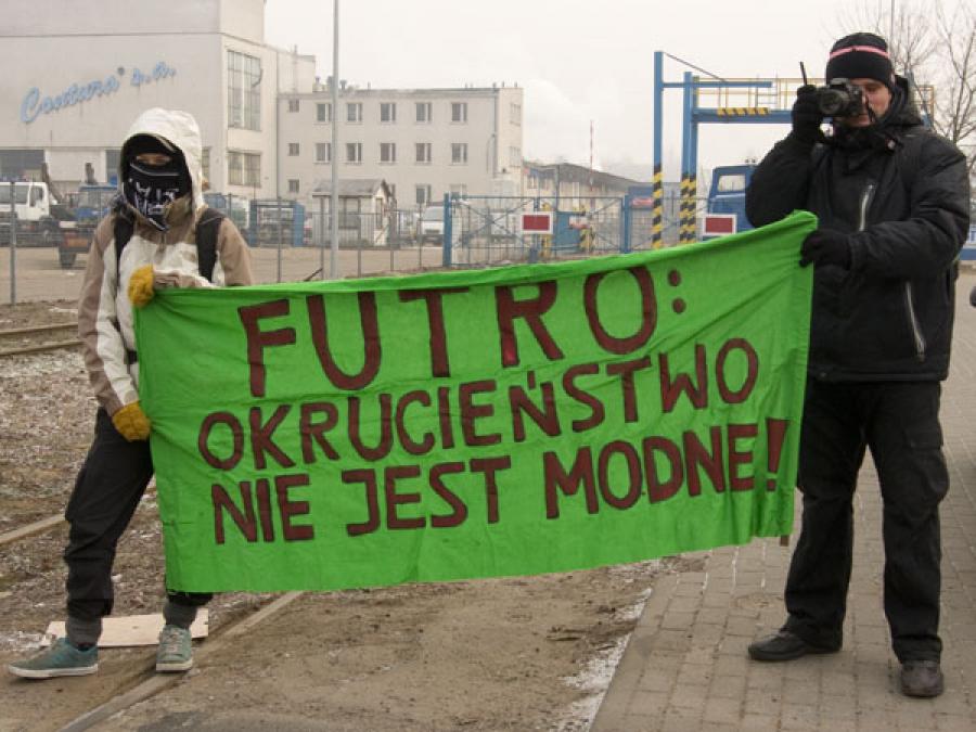 Przeciw zorganizowaniu pokazu zaprotestowała Koalicja na Rzecz Zakazu Hodowli Zwierząt Futerkowych w Polsce i o godz. 10.30 przeprowadziła protestacyjny happening. Zziębnięci na mrozie młodzi bojownicy o prawa zwierząt przyjeżdżających hodowców witali okrzykami: “krew na waszych rękach”, wzmacniając hasła waleniem w bębny.