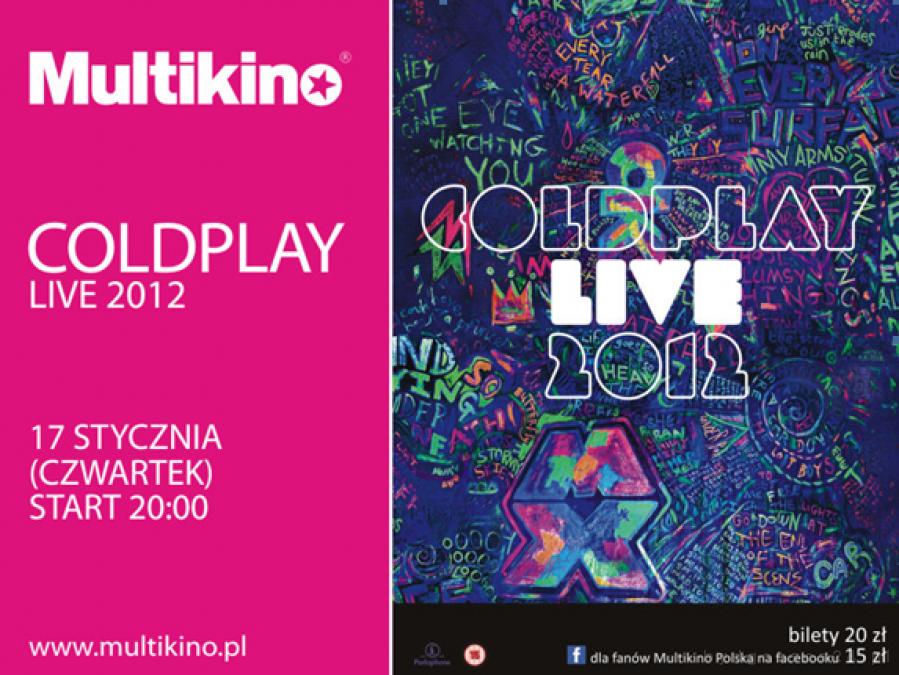Tymczasem mamy do rozdania dwa zaproszenia na Coldplay Live 2012. Aby wygrać bilety wystarczy przesłać prawidłową odpowiedź na pytanie: W którym roku nagrany został wcześniejszy filmowy zapis koncertów zespołu Coldplay? – na adres redakcja@bydgoszcz24.pl w terminie do czwartku 10 stycznia do godz. 15. Spośród autorów prawidłowych odpowiedzi rozlosujemy bilety. Informacja o rozstrzygnięciu konkursu pojawi się w tym miejscu również w czwartek o godz. 17. Bilety będą do odebrania w redakcji w piątek, 11 stycznia, od godz. 10 do godz. 16.