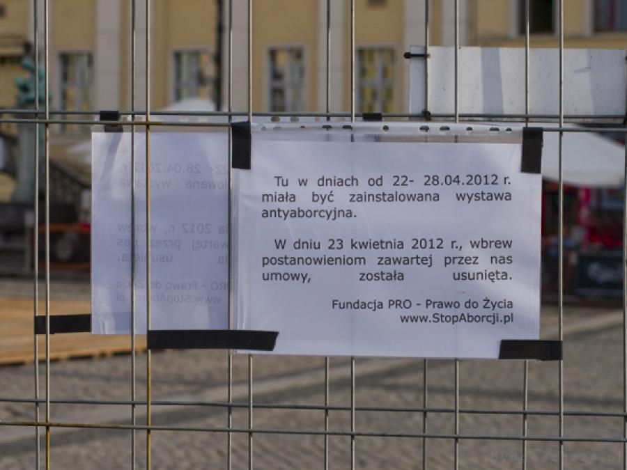 Zgodnie z umową dzierżawy zawartą z Zarządem Dróg Miejskich i Komunikacji Publicznej w Bydgoszczy Fundacja Pro-prawo do życia miała prawo na eksponowanie wystawy na Starym Rynku w Bydgoszczy od 22 do 28 kwietnia włącznie.