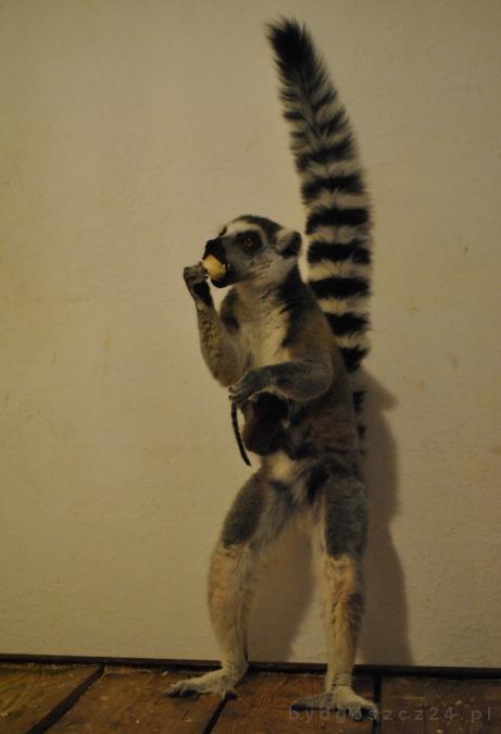 Nowego mieszkańca myślęcińskiego zoo przedstawia Sandra Federowicz, specjalista ds. PR LPKiW: – Mały lemur przybiera na wadze i trudno jest już go ukryć mamie, która nie rozstaje się z nim ani na moment. Przyczepiony do brzuszka podpatruje zachowania swoich starszych kolegów, jednak minie jeszcze sporo czasu zanim spróbuje własnych sił i zacznie skakać tak, jak oni. Najpierw za jakiś czas przeniesie się na grzbiet mamy, która będzie nosić go tam do czasu aż nauczy się samodzielnie poruszać.