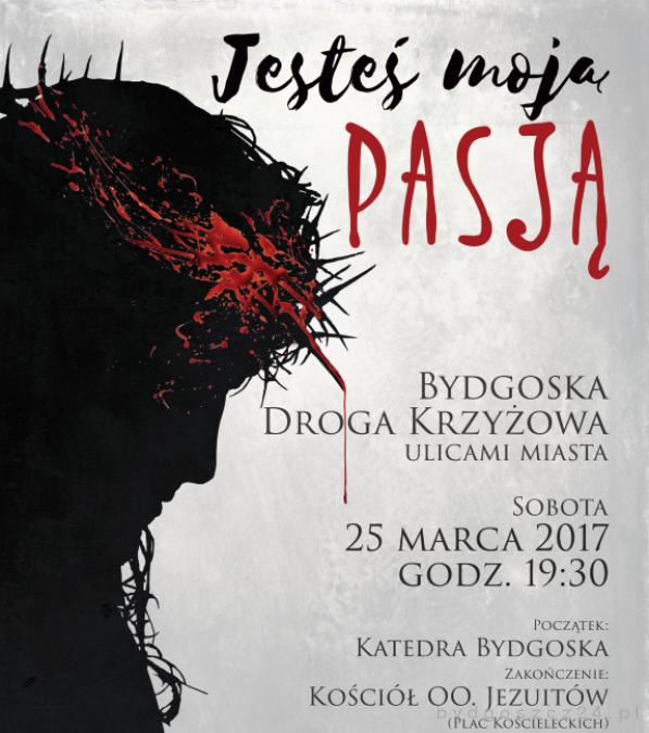 Droga Krzyżowa “Jesteś moją pasją” rozpocznie się przed Katedrą Bydgoską o godz. 19:30, skąd uczestnicy podążą za krzyżem przez Stary Rynek, ulicą Niedźwiedzią, przez Wyspę Młyńską, bulwarem w kierunku ulicy Mostowej i ulicami Mostową, Grodzką, Przy Zamczysku w kierunku kościoła oo. jezuitów przy placu Kościeleckich. Tam na zakończenie można będzie skorzystać ze spowiedzi świętej podczas adoracji Najświętszego Sakramentu.