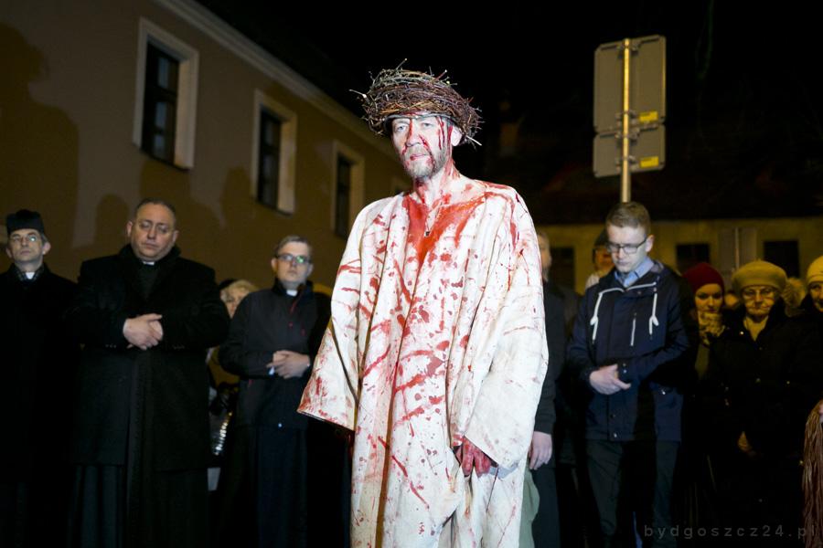 Tegoroczna Droga Krzyżowa ?Jesteś moją Pasją? rozpoczęła się przed Katedrą Bydgoską, skąd uczestnicy podążyli za krzyżem przez Stary Rynek, ulicą Niedźwiedzią, przez Wyspę Młyńską, bulwarem w kierunku ulicy Mostowej i ulicami Mostową, Grodzką, Przy Zamczysku do kościoła oo. jezuitów przy placu Kościeleckich.