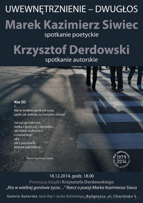 Krzysztof Derdowski, ur. w 1957 r., autor tomików wierszy: Czasowo nie ma wieczności i Cienie i postacie, a także powieści: Znikanie, Robal, Chłód, Naga oraz Wstyd. Wielokrotnie prezentował swoje wiersze, opowiadania, recenzje i szkice literackie w takich pismach jak: ?Twórczość?, ?Odra?, ?Poezja?, ?Fraza?, ?Topos?, ?Nurt?, ?Kwartalnik Artystyczny?. Pisał między innymi o twórczości Ireneusza Iredyńskiego, Kazimierza Hoffmana, Wisławy Szymborskiej, Ryszarda Kapuścińskiego, Janusza Żernickiego, Zdzisława Polsakiewicza. Autor książki?Mistyka zwierzęta i koany. Rzecz o poezji Stanisława Czerniaka? (2013)