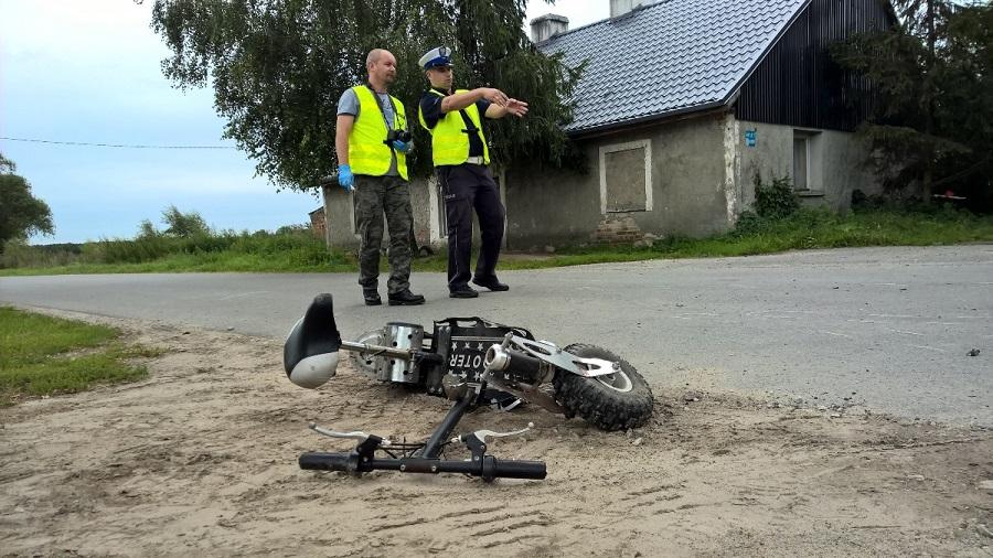 Wczoraj, 9 sierpnia, o godz. 11:50 w Kawęcinie, koło Świecia nad Wisłą, samochód osobowy potrącił dwójkę dzieci jadących na elektrycznej hulajnodze. Ze wstępnych ustaleń policjantów wynika, że 8-letnia dziewczynka wioząca 9-letniego chłopca, wymuszając pierwszeństwo przejazdu wyjechała z posesji na drogę wprost pod nadjeżdżające tico.