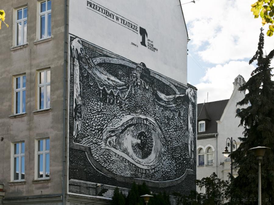 Murali się nie odsłania. One powstają i stają się częścią miasta. Uroczystość, która dzisiaj miała miejsce, miała na celu zwrócenie uwagi bydgoszczan, że kolejne tego typu dzieło powstało w mieście. Chociaż niewykluczone, że osoby przechodzące ul. Gdańską same zauważą, że ze ściany budynku stojącego tuż przy skrzyżowaniu z al. Mickiewicza spogląda na nich ogromniaste oko spod podniesionej kurtyny teatralnej. Zgodnie z zamysłem projektanta, malowidło ma nas pobudzić do postawienia sobie pytania, czy to my jesteśmy widzami, czy może to my występujemy na scenie i ktoś nam się bacznie przygląda.