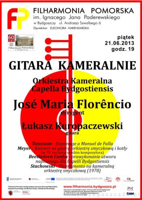 W 1995 miał miejsce pierwszy wielki sukces zaledwie 14-letniego gitarzysty w międzynarodowym konkursie w Gdańsku, gdzie zdobył tytuł ?Największej nadziei? (oprócz I nagrody i Grand Prix), a później zyskał w ocenach krytyki zaszczytne miano ?Moneta gitary?. Łukasz Kuropaczewski (rocznik 1981) na gitarze gra od dziesiątego roku życia. Po ukończeniu wrocławskiej Akademii Muzycznej w klasie Piotra Zaleskiego kontynuował studia mistrzowskie w Baltimore w Stanach Zjednoczonych pod kierunkiem światowej sławy gitarzysty Manuela Barrueco. Artysta koncertował już w większości krajów europejskich, w USA, Kanadzie, Południowej Afryce i Japonii, występował m. in. z Narodową Orkiestrą Symfoniczną Polskiego Radia, jest także aktywny jako kameralista. Ma w swoim dorobku kilka płyt. Specjalną pozycją programu będzie prawykonanie dzieła portugalskiego kompozytora Beethovelna Cunha zadedykowanego Capelli Bydgostiensis.