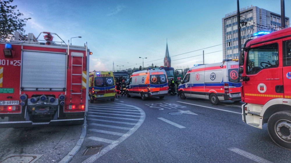 Około godziny 7 na ulicy Bernardyńskiej, blisko ronda Jagiellonów doszło do groźnego wypadku. - Kierowca autobusu linii nr 58 nie zachował ostrożności i uderzył w tył samochodu ciężarowego. Uderzona ciężarówka najechała jeszcze na samochód osobowy marki Daewoo. Do szpitala zostało przewiezionych pięć poszkodowanych osób - poinformował podkom. Przemysław Słomski z zespołu prasowego KWP w Bydgoszczy.