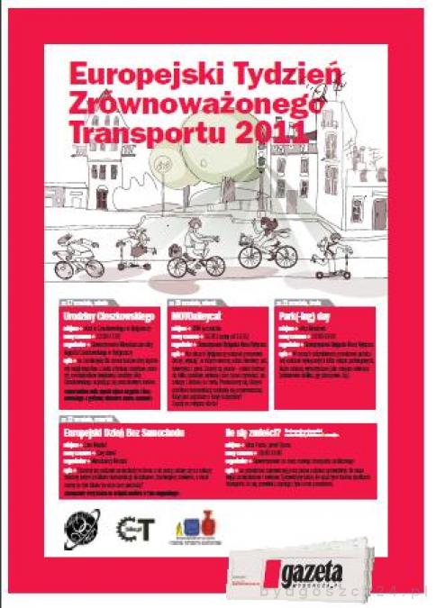 22 września ? Europejski Dzień bez Samochodu ? tradycją już się stało, że bydgoszczanie zostawiają w tym dniu samochody w garażach, a do pracy czy szkoły starają się dotrzeć środkami komunikacji publicznej bądź rowerem. O godzinie 18 przed Operą Nova zaplanowano kolejny happening ? tym razem zostanie wykonane porównanie, ile na przestrzeni zajmowanej przez auto zmieści się pieszych i rowerzystów. Zaproszenie na to wydarzenie jest w szczególności kierowane do osób, które chcą znaleźć się na pamiątkowej fotografii wykonanej podczas happeningu.