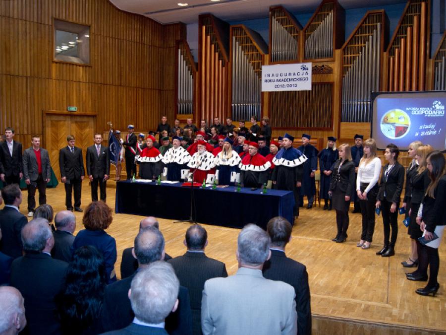 - Dzięki pomyślnemu wynikowi rekrutacji, mimo nasilającego się kryzysu demograficznego w Wyższej Szkole Gospodarki będzie studiowało w tym roku 6000 studentów, w tym prawie 250 z zagranicy. Zachęcam studentów do korzystania z możliwości uczelni. Dbajcie o honor i wizerunek naszej nowoczesnej i dostosowanej do potrzeb społeczeństwa szkoły. Nabywajcie nawyk ustawicznego kształcenia się. Rok akademicki 2012/2013 na Wyższej Szkole Gospodarki uważam za rozpoczęty – powiedział rektor WSG prof. Kazimierz Marciniak.
