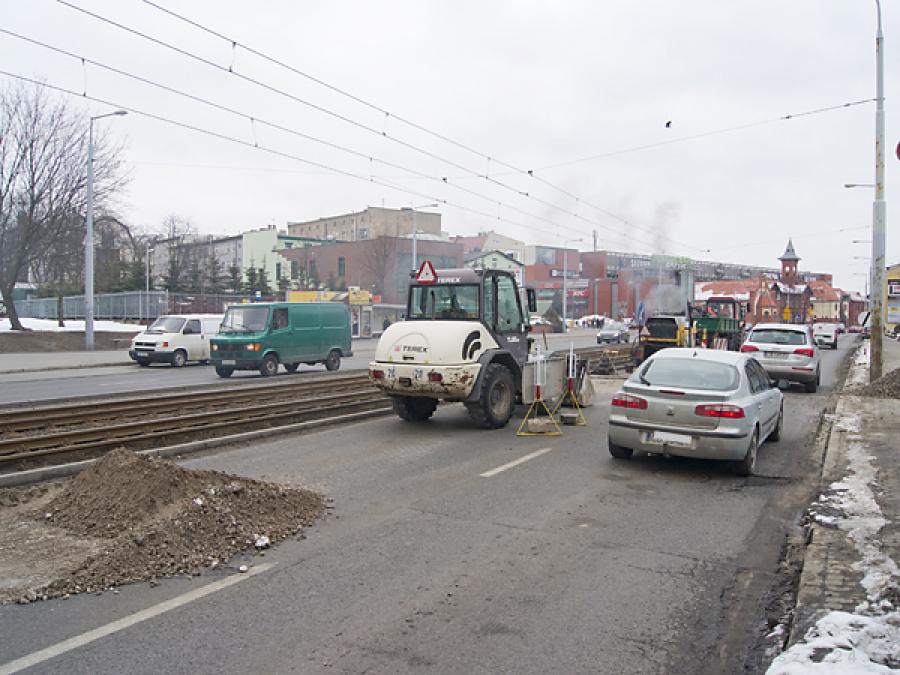 Kierowcy wyjeżdżający z centrum miasta ulicą Jagiellońską w kierunku Fordonu musieli uzbroić się dzisiaj w nieco większą cierpliwość. Pokonawszy rondo Jagiellonów w drodze do ronda Fordońskiego dotąd jedyny wymuszony postój był przed skrzyżowaniem z ulicą Ogińskiego. Dzisiaj drogowcy ze sprzętem do równania nawierzchni, w tym traktorem z przyczepą spowolnili ruch na wysokości gazowni.