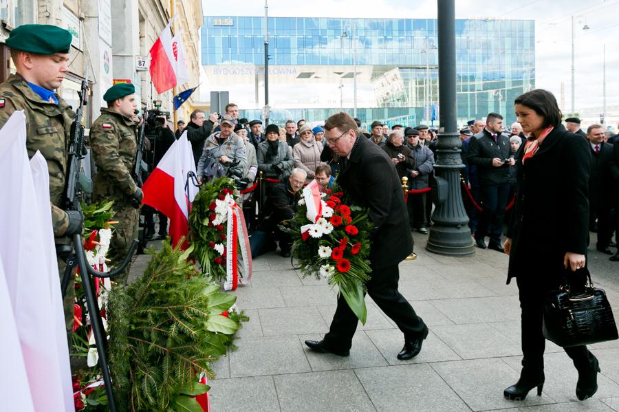 Po złożeniu kwiatów pod tablicą uczestnicy uroczystości pomaszerowali do kościoła Świętych Apostołów Piotra i Pawła przy pl. Wolności, gdzie uroczystej Mszy świętej przewodniczył bp Jan Tyrawa, ordynariusz bydgoski.