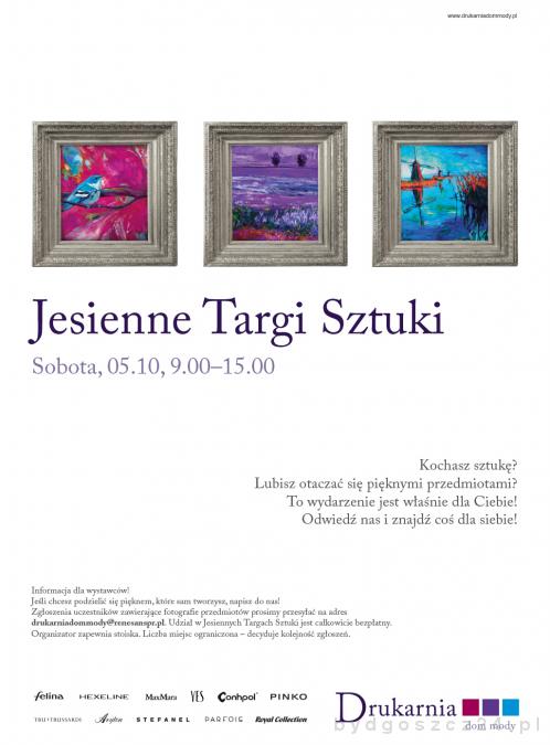 Do swojego stoiska już teraz zaprasza charytatywny sklep Sue Ryder, gdzie będzie można nabyć prace młodych bydgoskich malarzy powstałych w trakcie imprezy ?Ulica Drukarska?. Nie zabraknie także sztuki użytkowej. Na Jesiennych Targach Sztuki będzie można zakupić ręcznie malowane klosze jak i suknie.