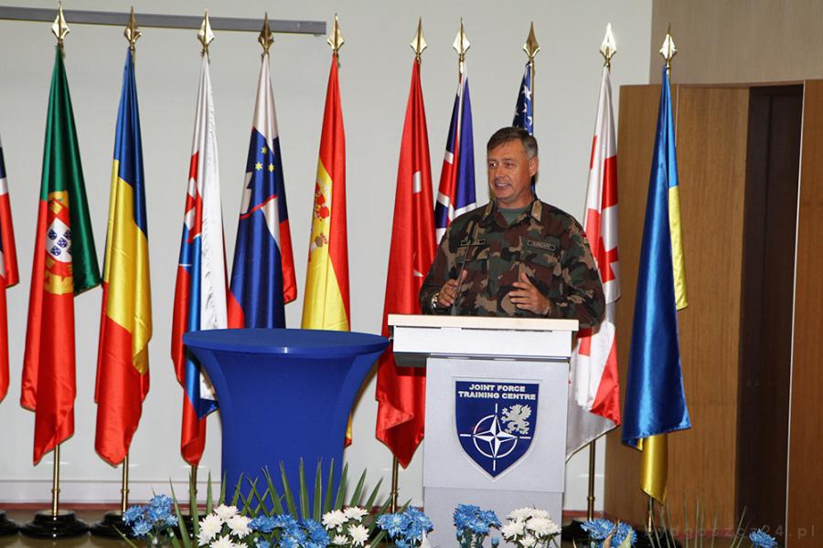 - Serdecznie dziękuję wszystkim za ciepłe przyjęcie i gościnność, której doświadczyłem przez ostatnie trzy lata. Udało się nam wiele osiągnąć wspólnym wysiłkiem ? powiedział generał László Szabó, zwracając się do pracowników JFTC i współpracujących jednostek, którzy zgromadzili się na uroczystości w audytorium. Żegnając się ze swoimi współpracownikami, odchodzący zastępca i szef sztabu przypomniał, że było to dla niego pierwsze stanowisko w strukturach NATO, które objął po 3 latach pobytu w Afganistanie. – Wszyscy mamy świadomość tego, że pierwsze wrażenie pozostaje na zawsze. Dziękuję, że miałem okazję tu mieszkać, uczyć się i pracować razem z wami ? powiedział generał Szabó, po czym zwrócił się do swojego następcy: – Panie generale Jung, Ladislavie, od teraz personel JFTC podlega tobie.