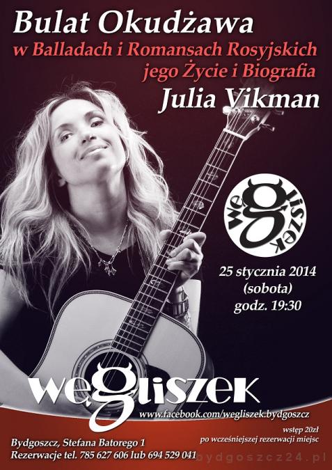 Podczas koncertu Julia Vikman opowie o życiu wielkiego poety. Jej ojciec, zasłużony artysta Paweł Vikman, który był dyrektorem Teatru Opery i Baletu, znał go osobiście. Wyznaczał Okudżawie trasy koncertowe w Rosji i Mołdawii.
