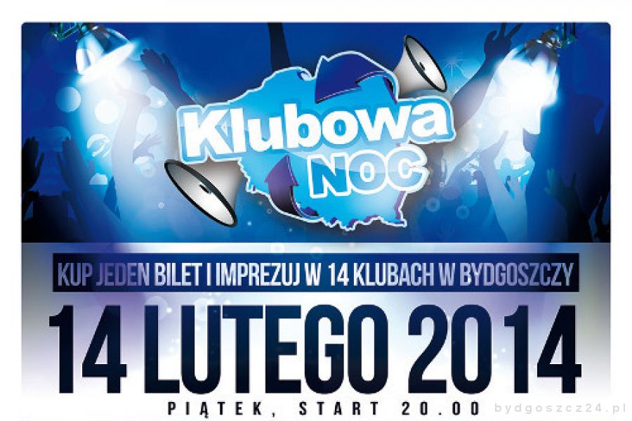 W każdym z lokali biorących udział w Klubowej Nocy na uczestników czekają: imprezy w różnych klimatach muzycznych, specjalne walentynkowe atrakcje dla singli i dla zakochanych, promocje na barach do 80%, atrakcyjne nagrody, w tym zagraniczna wycieczka! Klubowa Noc to największe klubowe wydarzenie w Bydgoszczy. Z jednym biletem można bawić się praktycznie we wszystkich bydgoskich klubach. Tradycyjnie uczestnicy będą mogli bez żadnych ograniczeń przemieszczać się między lokalami i pozostać w tych miejscach, które najbardziej im odpowiadają. Każdy z klubów przygotował specjalne imprezy i promocje, dzięki czemu warto będzie się przemieszczać.