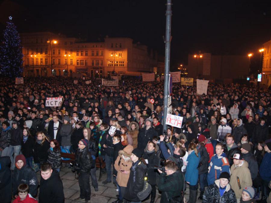 Protest przeciwko podpisaniu przez Polskę dokumentu ACTA spontanicznie zwołany został w weekend na Facebooku. Do dzisiaj blisko osiem tysięcy osób deklarowało, że przyjdzie na plac Wolności i zaprotestuje także poza internetem. Faktycznie przyszła mniej niż połowa.