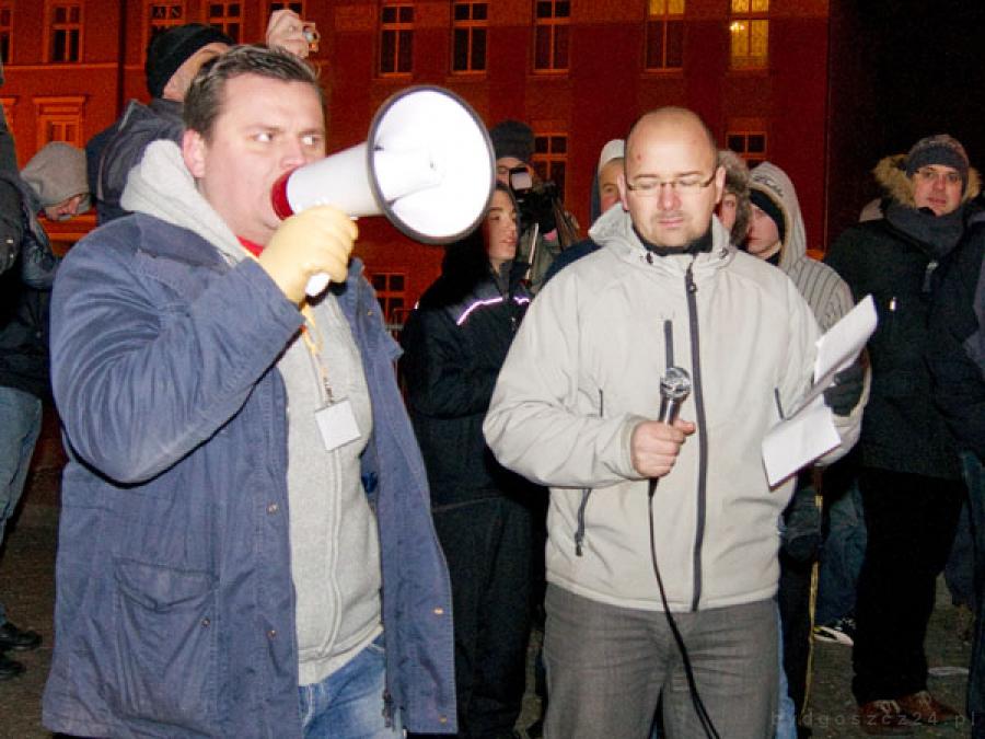 Pierwszy przystanek manifestacji zaplanowali pod biurem parlamentarzystów PO. Tutaj rozległo się głośne: “Byłeś w ZOMO, byłeś w ORMO, dzisiaj jesteś za Platformą” i “Rząd się sprzedał”. W oknie biura pojawił się senator Jan Rulewski, który po chwili wyszedł do demonstrantów z termosem gorącej herbaty i wydrukiem tekstu ACTA. – To nie jest tak, że ktoś chce wprowadzić cenzurę. Po prostu państwa umówiły się, że będą dbać o prawa autorskie. Przeczytajcie ten dokument – przekonywał jednego z manifestantów. Raczej nikogo nie przekonał. – Mimo wszystko szacunek za to, że do nas wyszedł. Pokazał, że ma odwagę, nie to co tydzień temu prezydent Bruski, który uciekł przed nami – mówili zgodnie manifestanci.
