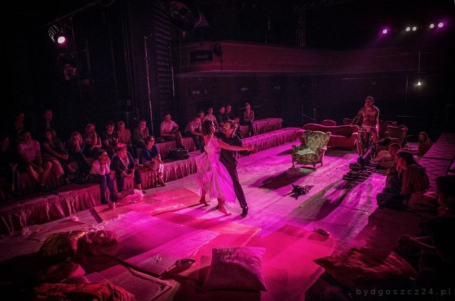 No i jeszcze ta nachalna maniera obecna we wielu spektaklach bydgoskiego teatru ? zwracania się z tekstami, wyjaśnieniami, wykładniami do publiczności niczym w teatrze dell’arte. Do licha, czy aktorzy, reżyserzy nie wiedzą, że teatr dell’arte był ludyczny i śmieszny, bowiem jego publiczność stanowili analfabeci. Nie traktujcie bydgoskiej publiczności jak analfabetów. Niech się coś dzieje między postaciami ? oprócz pospiesznych ruchów kopulacyjnych na chwilę przed lichym orgazmem. Przecież obcowanie ludzi, to zawieszone nastroje, niedopowiedziane kwestie, mieszanina wielkości i małości, kłamstwa i prawdy. To doktor Jekyll i pan Hyde w każdym z nas.