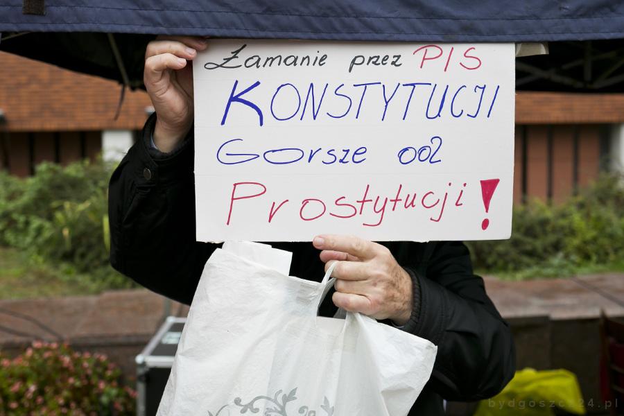 Pierwszy głos zabrał Andrzej Bobkowski, szef KOD w Bydgoszczy. – Ten rząd jest z nadania obywateli, nie z woli Bożej – powiedział Bobkowski i dodał, że obywatele mają tego rządu dość. – Obywatel mówi: “dość!”. Dość łamania naszych praw! Nie dla demontażu Trybunału Konstytucyjnego. Nie dla zamachu na niezależność sądownictwa! Prawo jest naszym wspólnym dobrem, a nie narzędziem represjonowania obywateli. Mówimy “nie” zawłaszczaniu państwowej telewizji i radio. To nie jest tuba jednej partii! – grzmiał Bobkowski, dodając, że obywatele odrzucają planowane reformy szkolnictwa czy polskiego wojska. – Obywatele mają dość! – stwierdził.