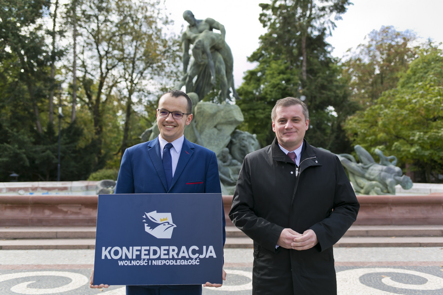 Na tle fontanny "Potop" kandydat Konfederacji do Sejmu Marcin Sypniewski stwierdził, że tylko zakaz importu śmieci jest skutecznym sposobem na to, by Polska przestała być śmietnikiem Europy.