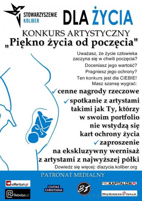Stowarzyszenie KoLiber konkurs adresuje do studentów oraz uczniów szkół ponadpodstawowych. Chcąc wziąć w nim udział należy wykonać pracę plastyczną w dowolnej technice (rysunek, fotografia, rzeźba, grafika komputerowa itp.), wyrażającej hasło konkursowe ?Piękno życia od poczęcia? oraz przesłania jej na adres Stowarzyszenia KoLiber. Najlepsze prace wybrane przez jury konkursu wezmą udział w wystawie, której otwarcie nastąpi 13 kwietnia 2014 r., w przeddzień Dnia Świętości Życia. Autorzy trzech szczególnie wyróżniających się prac otrzymają ponadto nagrody rzeczowe. Czwarta nagroda rzeczowa przyznana zostanie zwycięzcy głosowania publiczności na fanpage akcji: https://www.facebook.com/KoLiberDlaZycia?fref=ts