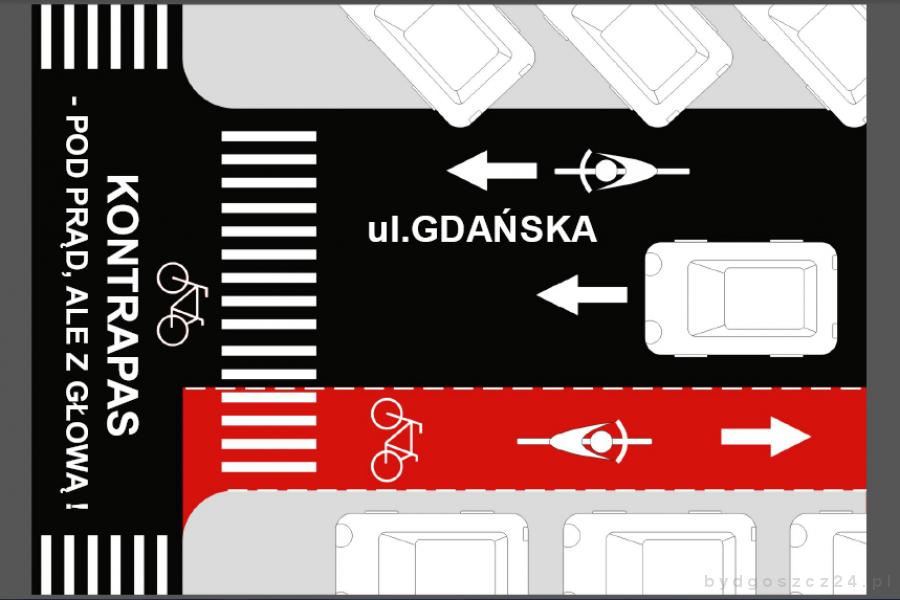 - Kontrapas jest to wydzielony pas ruchu, po którym rowerzyści mogą poruszać się pod prąd. Na ulicy Gdańskiej powstaje on na odcinku od Mickiewicza do placu Wolności, bo na tym fragmencie Gdańska jest jednokierunkowa ? wyjaśnia prezes Stowarzyszenia Bydgoska Masa Krytyczna, Wojciech Bulanda. – Jest to standardowe rozwiązanie w wielu europejskich i polskich miastach, które w Bydgoszczy budzi już wiele sprzeciwu, co dla nas jest trochę niezrozumiałe. Jeśli chcemy chociaż po części uatrakcyjnić centrum miasta to takie rozwiązania jak kontrapas czy zamykanie części ulic dla ruchu samochodowego muszą być częściej stosowane. Tak się dzieje w miastach, które postawiły na zmianę priorytetów miejskiej komunikacji i przyciągnięcie większej liczby turystów ? dodaje Bulanda.