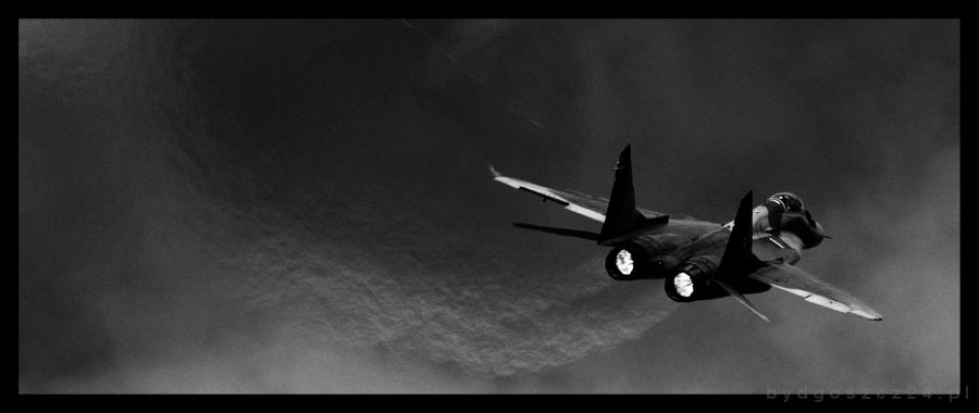 Intuicyjna pewność pozwala mu na szybkie wyraziste podejmowanie decyzji. Chwyta to, co godne uwagi, czyniąc obraz przejrzysty, posiadający matematyczny porządek, kompozycyjny ład. Unika sztywnej symetrii, tworzy zgrabną i zrównoważoną całość w zakresie tonów, jak i kształtów. Mniejszą wyraźnie zarysowaną płaszczyznę samolotu równoważy większą, ale lżejszą optycznie grupą śladów linearnych. Aby zachować równowagę kształtów, pokaźną sylwetę obiektu umieszcza przy jednej krawędzi kadru, pozostałe mniejsze elementy po przeciwnej stronie - Tadeusz Czarnecki.