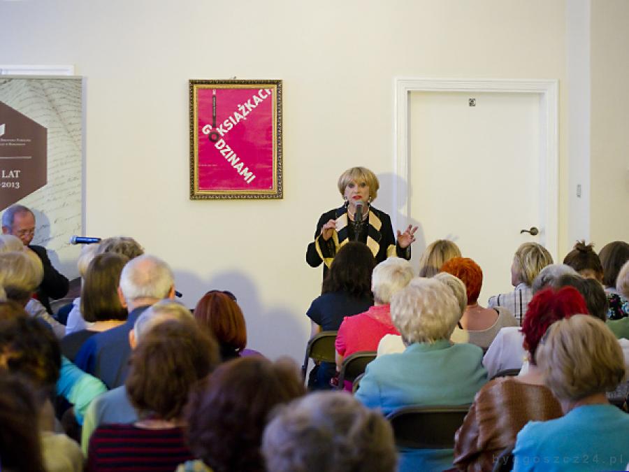 Spotkanie z bydgoskimi czytelnikami zaczęła Krystyna Sienkiewicz od wykonania piosenki urodzonego w Bydgoszczy Jana Jakuba Należytego.