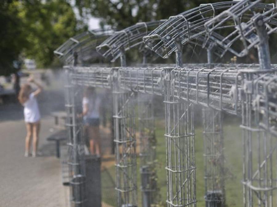 Natomiast na placu Teatralnym przechodnie mogą ochłodzić się dzięki pergoli wodnej.
