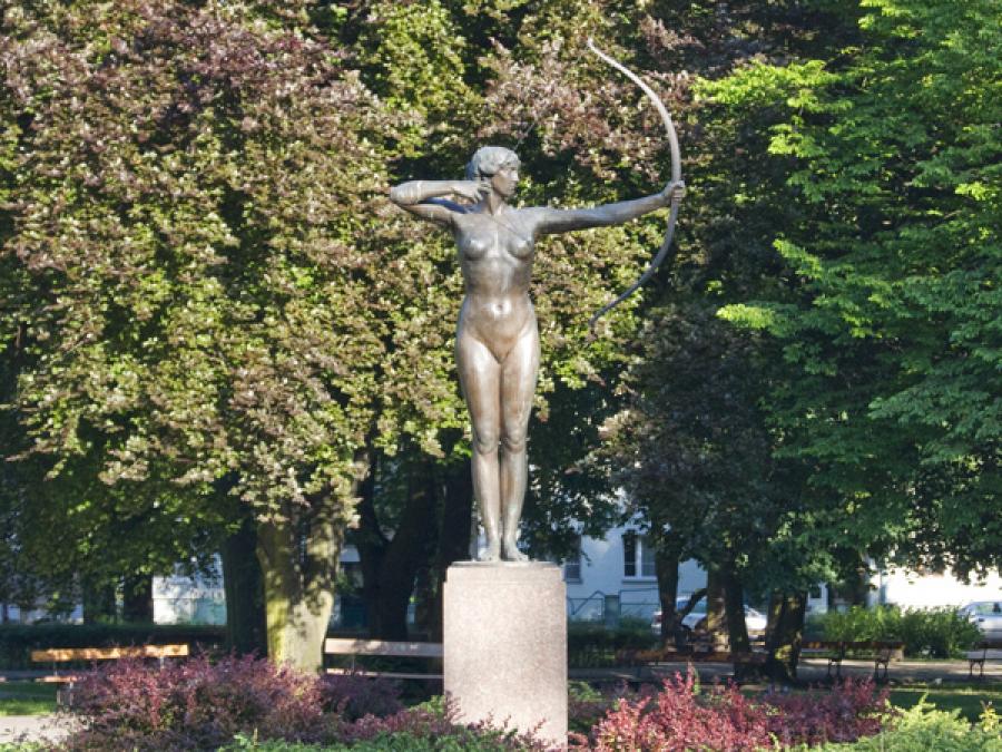 Łuczniczka stoi z napiętym łukiem, ale strzała zniknęła. Podejrzewa się, że ukradli ją złomiarze. Akt wandalizmu wzburzył prezydenta Rafał Bruskiego, który zwrócił się z apelem do bydgoszczan o pomoc w znalezieniu i zatrzymaniu sprawców.