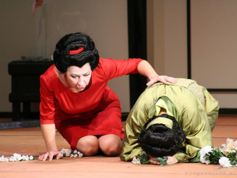 Dziejący się w egzotycznym pejzażu Nagasaki dramat gejszy został subtelnie zrealizowany z wydobyciem z partytury całego piękna muzyki, zachowaniem wiarygodności psychologicznej, scenicznej harmonii i z wykorzystaniem nowoczesnej techniki świateł.