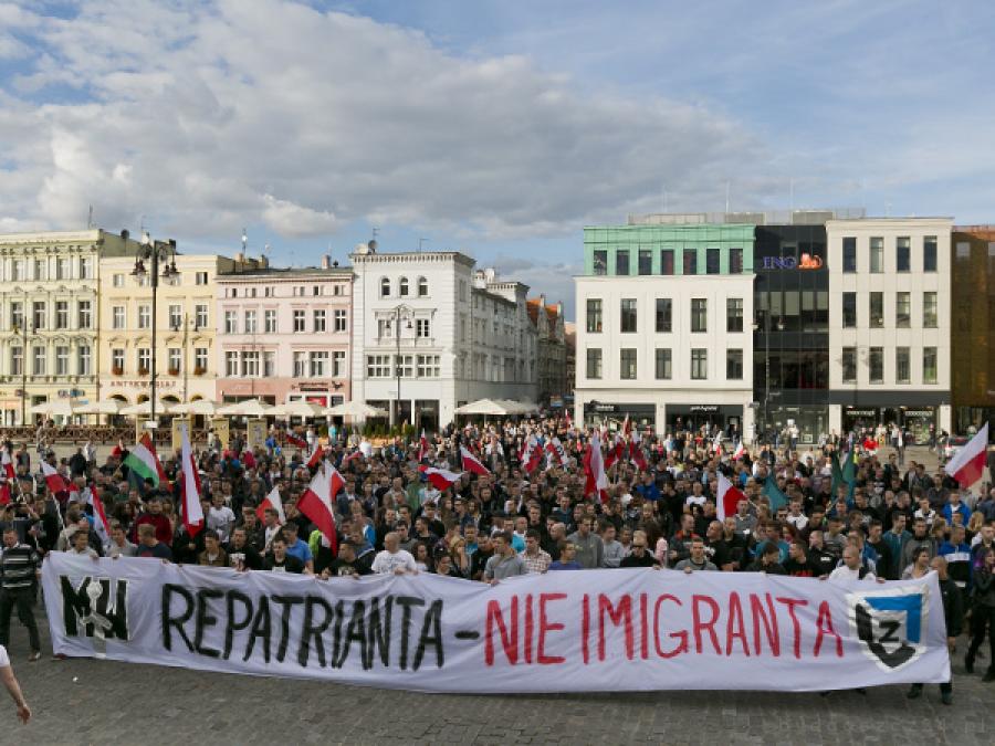 Na Starym Rynku do zgromadzonych przemówili liderzy Młodzieży Wszechpolskiej i Obozu Narodowo-Radykalnego. Słowom o tym, że polski rząd ponad milion złotych przeznaczonych dla repatriantów zdecydował wydać na imigrantów towarzyszyły okrzyki: Hańba!” i “Złodzieje!” – Jakim prawem, my Polacy, mamy przyjmować do Polski imigrantów, jeżeli to nie my wyciągaliśmy ręce po ropę na Bliskim Wschodzie? Chcemy być gospodarzami we własnym kraju, mamy dość rządu, który gra pod dyktando Berlina, czy Brukseli – mówił Sebastian Pettka z Młodzieży Wszechpolskiej, podając premiera Victora Orbana jako polityka dbającego o interes narodowy Węgrów. – Chcemy przeprosić braci Węgrów za zdradę, jakiej dopuściła się premier Kopacz z minister Piotrowską – dodał. Słowa te wywołały oklaski i skandowanie: “Polak -Węgier, dwa bratanki”.