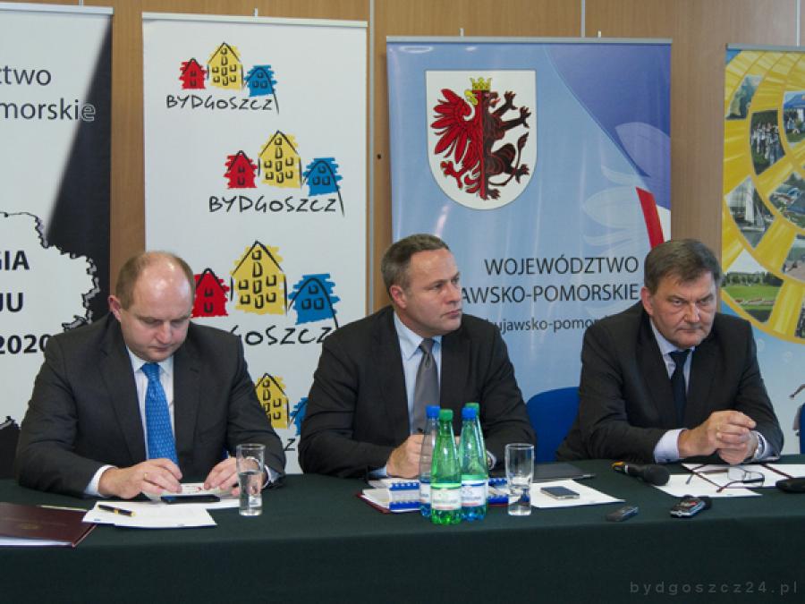 Strategia województwa kujawsko-pomorskiego będzie ważnym dokumentem planistycznym uchwalonym przez sejmik województwa, przesądzającym na długie lata najważniejsze kierunki rozwoju i zapewnienie finansowania inwestycji publicznych o charakterze infrastrukturalnym. W dzisiejszej naradzie wzięli udział marszałek województwa Piotr Całbecki, prezydent Rafał Bruski, starosta powiatu bydgoskiego Wojciech Porzych, samorządowcy z gmin okalających Bydgoszcz, przedsiębiorcy, przedstawiciele nauki. Spotkanie odbywa się w okresie, w którym spory bydgosko-toruńskie zostały wyraźnie wyciszone, szczególnie na tle podziału regionalnych funduszy na inwestycje. Dzisiejsze spotkanie poprzedzone zostało podpisaniem przez marszałka Piotra Całbeckiego i prezydenta Rafała Bruskiego umowy na realizację projektu ?Bydgoski Węzeł Wodny ? rewitalizacja bulwarów i nabrzeży?.
