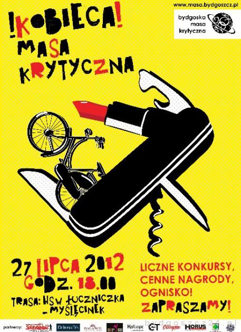 Panie, które przybędą w piątek na Masę Krytyczną znajdą się w uwadze nie tylko swoich kolegów na rowerach, ale i całej bydgoskiej społeczności, bo trasa tego przejazdu zostanie poprowadzona przez ścisłe centrum miasta. Te rowerzystki, które wzbudzą swoim ubiorem i stylem największe zainteresowanie, zostaną nagrodzone wejściówkami na fitness i do salonów kosmetycznych. Na zakończenie jest planowane ognisko w Leśnym Parku Kultury i Wypoczynku. Przejazd jest zalegalizowany i będzie zabezpieczany przez policję.