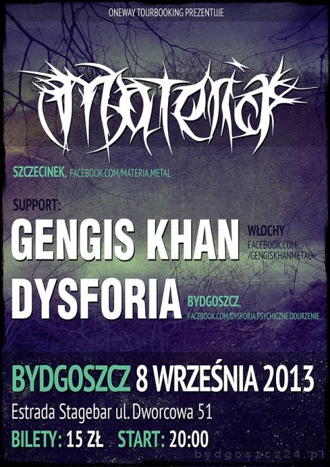 U boku Materii wystąpią: pochodzący z Włoch Gengis Khan oraz bydgoska Dysforia.