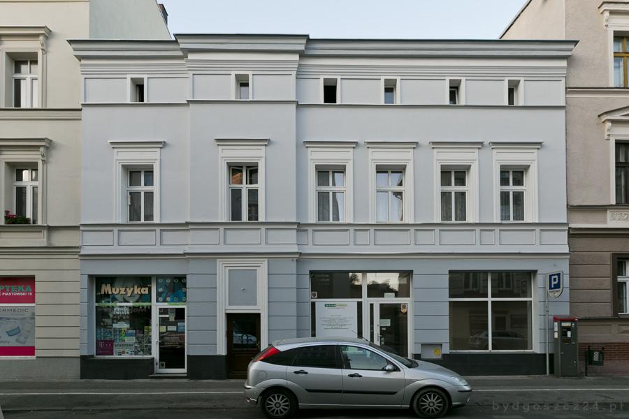 Nam jednak najbardziej podoba się maluch z ulicy Sienkiewicza. Minikamienica z numerem 17A należy do młodzieńczych dzieł Józefa Święcickiego. Wykonał ten projekt wspólnie z ojczymem, czyli najmniejsza kamienica w Bydgoszczy musiała powstać na początku lat 80. XIX wieku, gdyż w roku 1885 Święcicki miał już własną firmę projektowo-budowlaną.