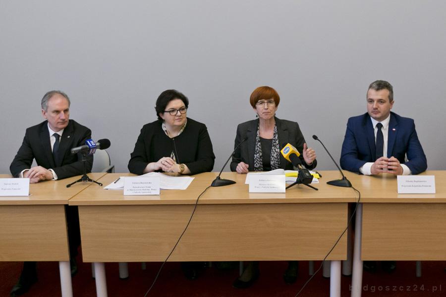 Goszcząca w Bydgoszczy minister Elżbieta Rafalska wyjawiła podczas spotkania z dziennikarzami, jaki był cel spotkania, które odbyła się dzisiaj w w Kujawsko-Pomorskim Urzędzie Wojewódzkim. Ich międzyregionalny charakter służy wymianie doświadczeń, pozwala pokazać “takie powiatowe sposoby rozwiązywania problemów”. – To nie są spotkania tronowe, to są spotkania o charakterze roboczym – poinformowała minister rodziny, pracy i polityki społecznej.